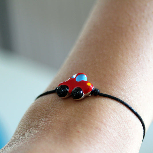 Bracciale cordino con automobilina argento e smalto rosso