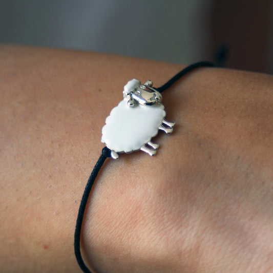 Bracciale cordino con pecorella argento e smalto bianco