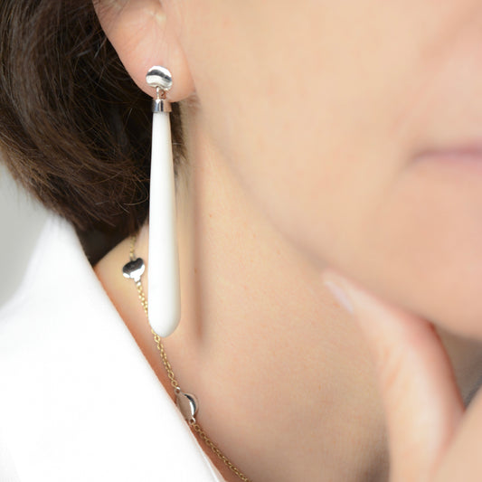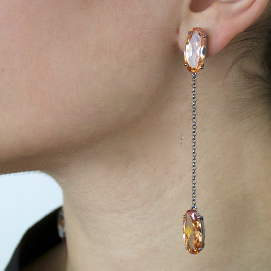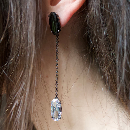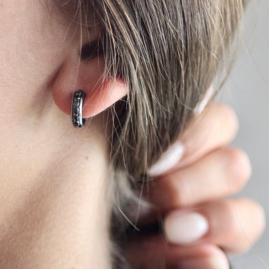 Orecchini a cerchio oro bianco brunito e brillanti neri