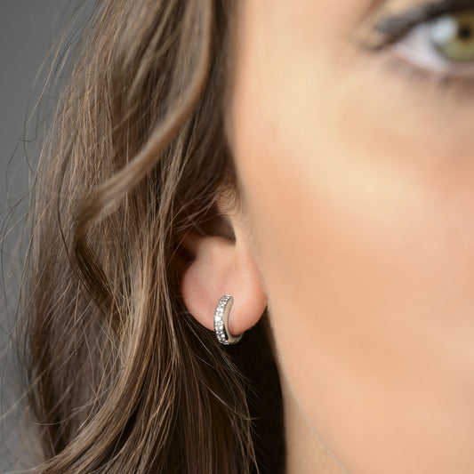 Orecchini a cerchio oro bianco e brillanti